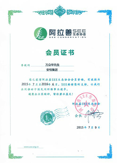 安恒新闻 / 安恒新闻 / 奉献环保公益事业 安恒集团董事长万众华加入阿拉善SEE生态协会